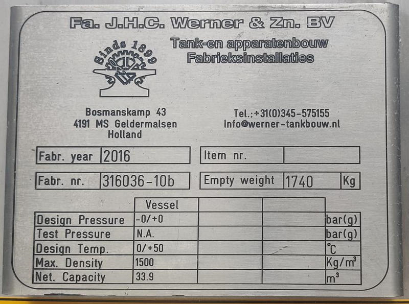 | Description (EN) | Design pressure -0/+0 bar(g) --- Design temp 0°C/+50°C |