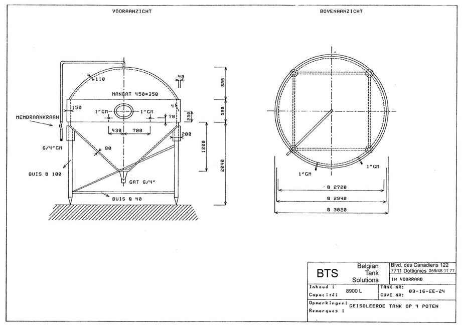 | Outside diameter tank (mm) | 3010 |