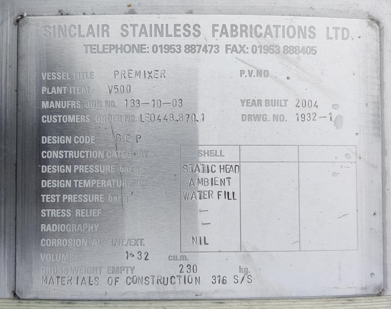 | Description (EN) | Design temp AMB --- Pressure test: water fill --- load cells available |