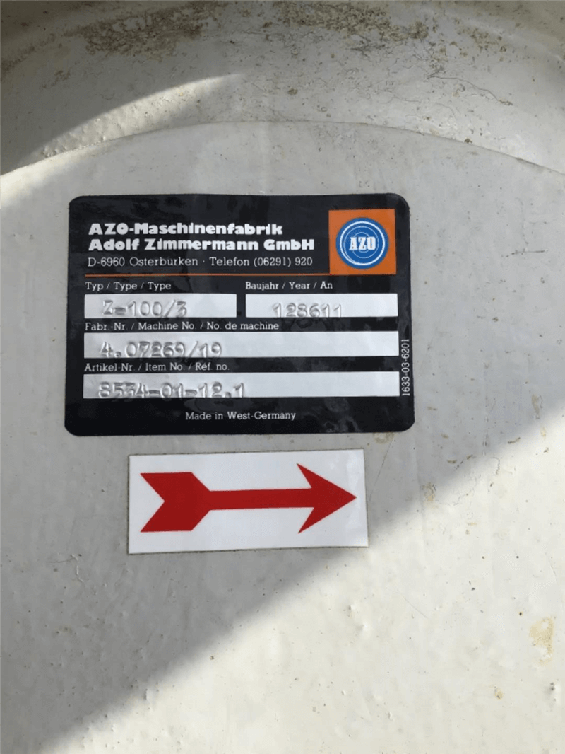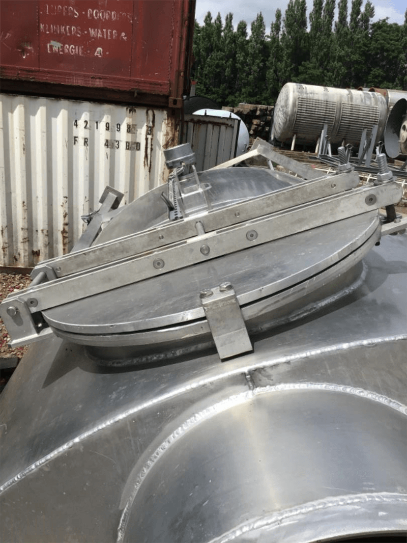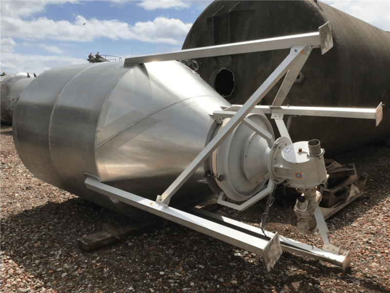 Description (EN) | Used silo - Aluminium - 10500L - Top (1x flange Ø600 mm, 1x flange Ø390 mm, 1x tube Ø80 mm inside, 1x tube Ø80 mm inside, 1x hole Ø475 mm inside) - Cilinder (1x manhole Ø570 mm inside) - Bottom (vibrator, rotary valve) |