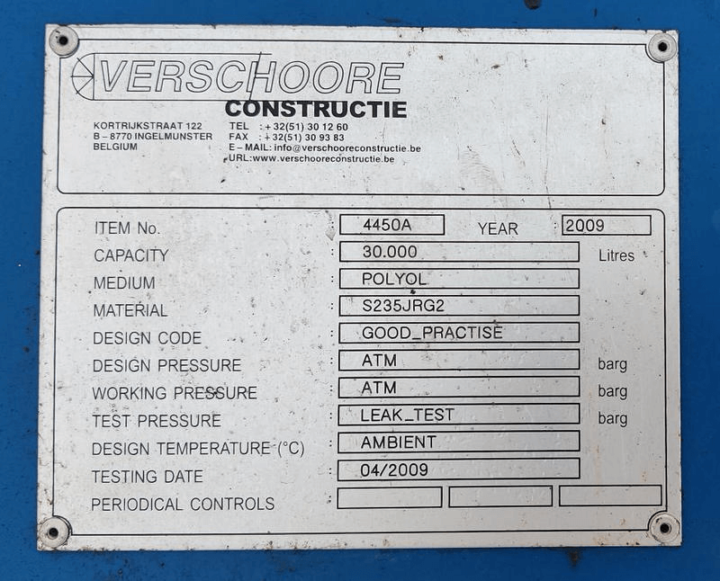 | Description (EN) | design pressure ATM --- working pressure ATM --- design temperature AMB --- Polyol residue on walls |